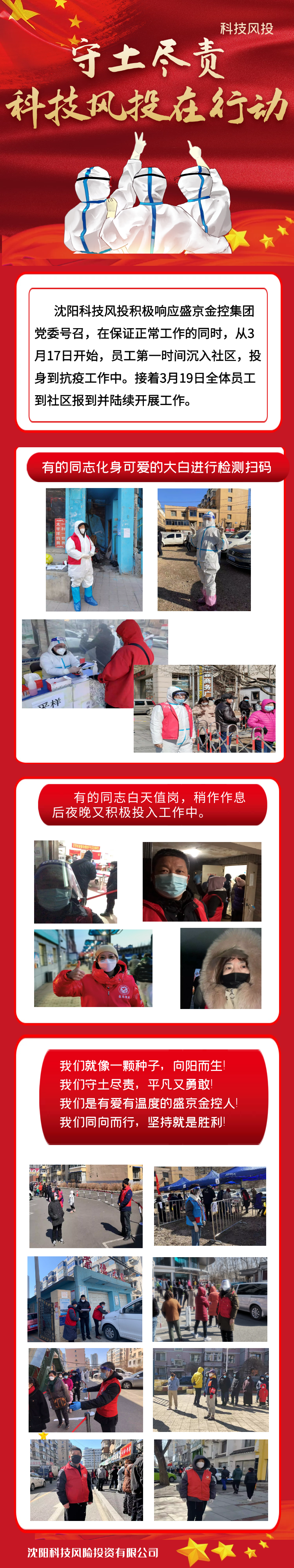 面临严肃重大的疫情防控形势,,威尼斯9499登录入口金控集团凭证市委组织部疫情防控要求,,抽召集团及各子公司在大东区、浑南区内居家办公职员,,就近到栖身地社区报到,,投入所在区域疫情联防联控事情。。。